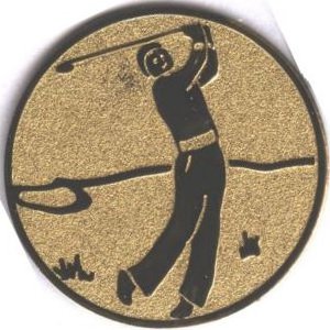 Zlatý, stříbrný nebo bronzový emblém s motivem golfu (hráč v nápřahu) do medaile nebo poklice pohárů .
