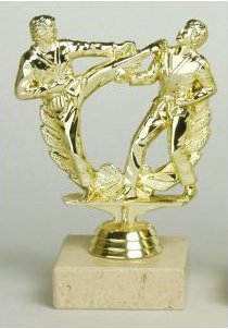 Zlatá figurka karate dvojice, na mramorovém podstavci, vysoká 14 / 16 / 18 cm.