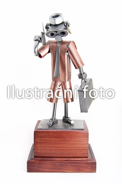 K figurce lze na základnu umístit i štítek příslušné velikosti s textem – například oceněním, přáním, citátem nebo vtipným bonmotem.