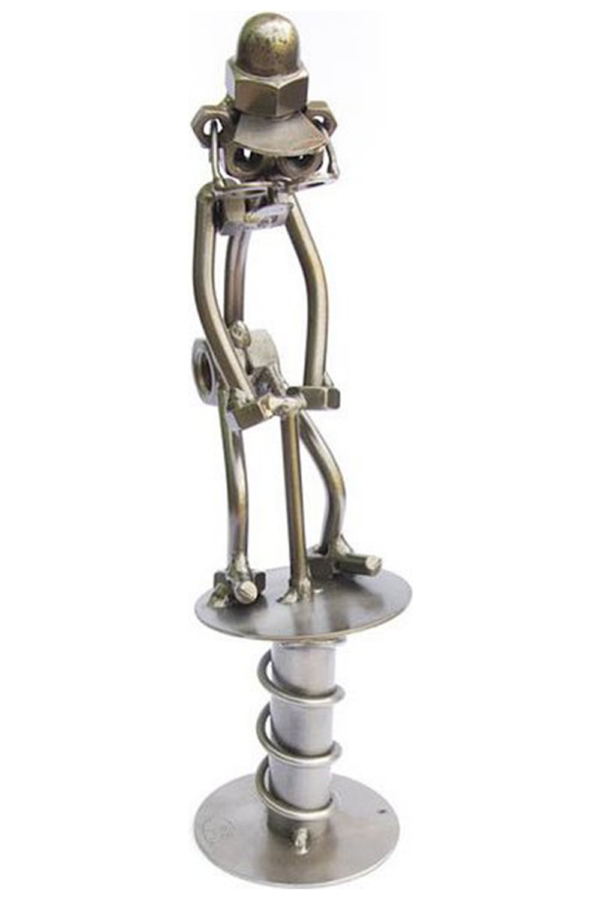 Kovová figurka Vývrtka ručně zhotovená z běžných strojních materiálů.
