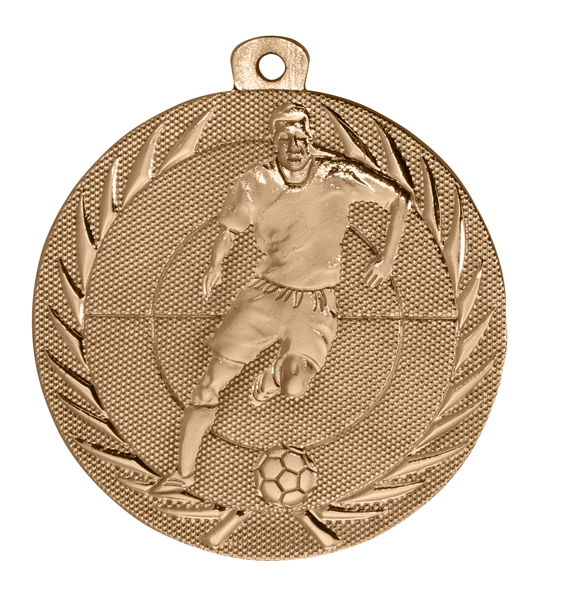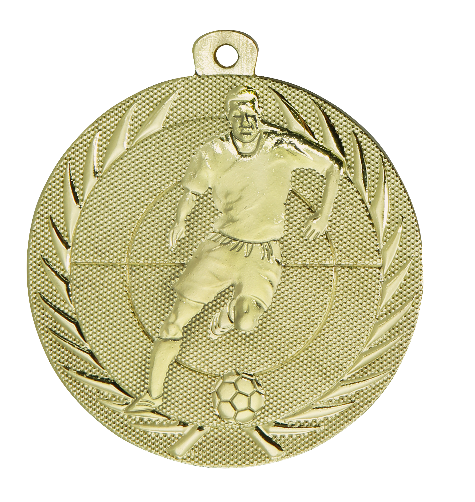 Střední fotbalová medaile o průměru 50 mm hráč s míčem. Cena je včetně stuhy.